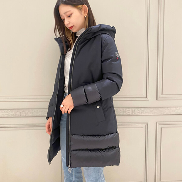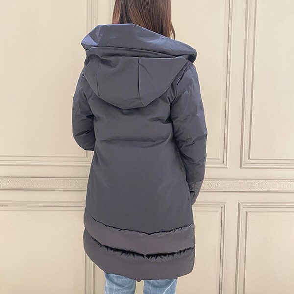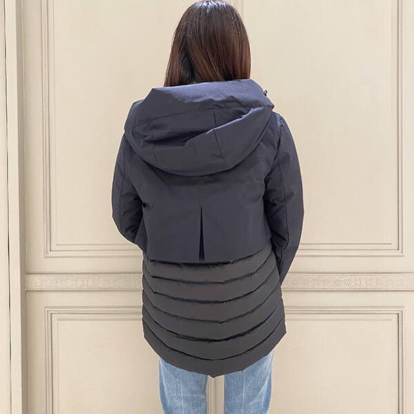 ヒップまで隠れる着丈とハイネック使用で高い保温性も兼ね備えている優秀ダウンです。