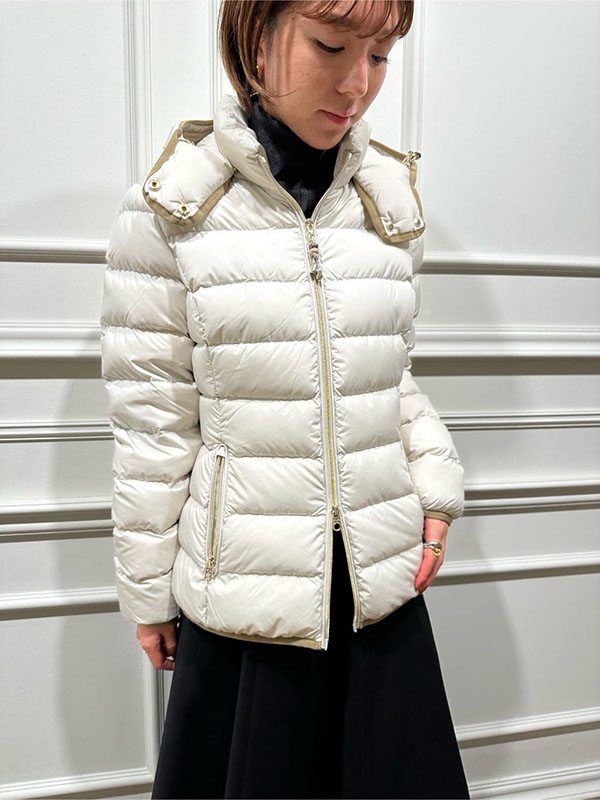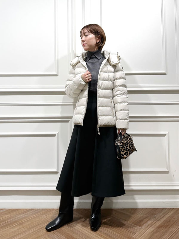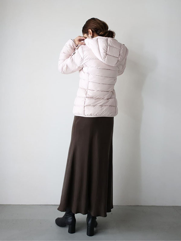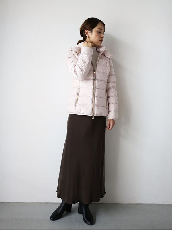 カジュアルになり過ぎない女性らしいAラインシルエットのダウンです。