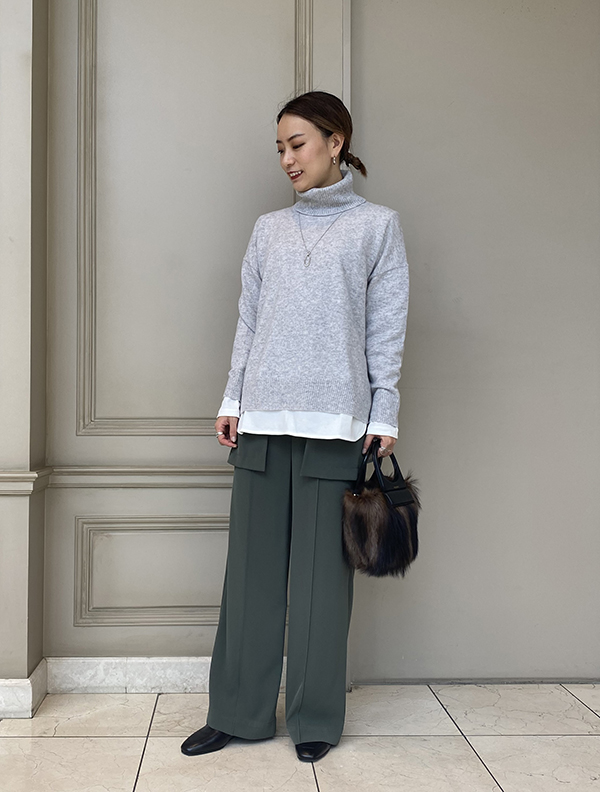 それではこちらのニットを使ったコーディネートをご紹介していきます。