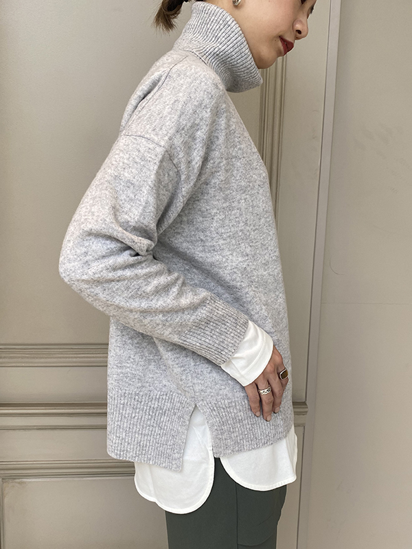 程よくゆとりのあるサイズ感のタートルネックとクルーネックタイプの2種類です。