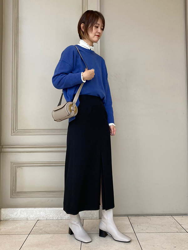ボトムはタイトスカートを合わせてレディライクなスタイルに仕上げました。