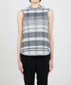 この夏、肌見せにも挑戦したい!夏らしい大きなチェック柄が印象的な大胆に背中が開いたサマーニットを主役に、ワイドパンツでバランスを取ってヘルシーな印象に。