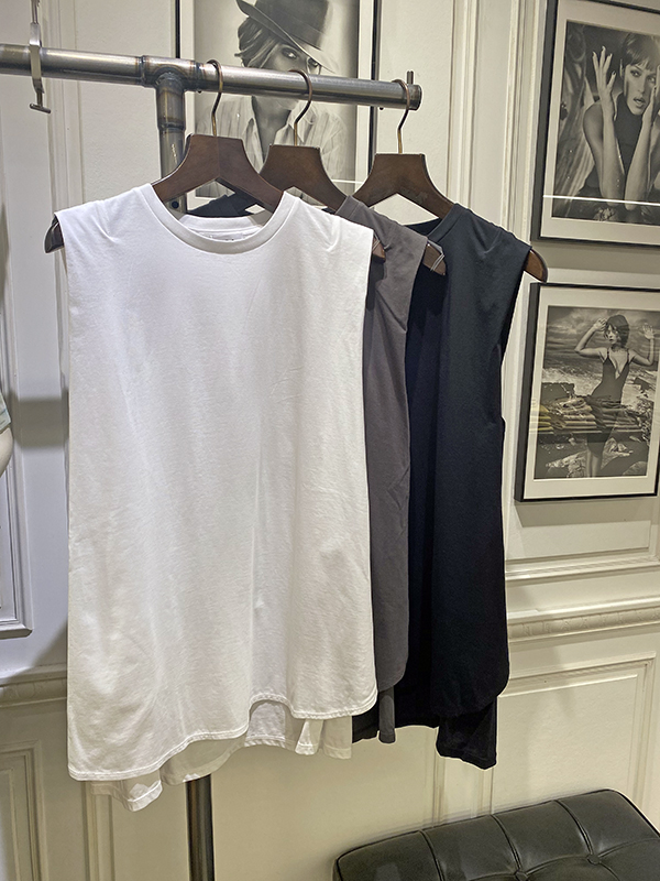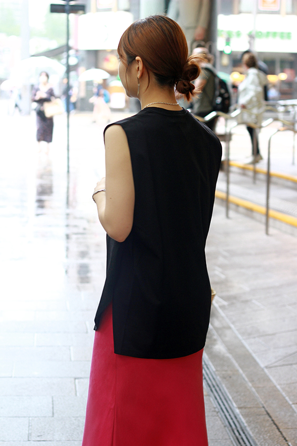 前後差のある着丈とヘムラインの変化でこなれた着こなしに。シンプルながらモード感のある一着です。