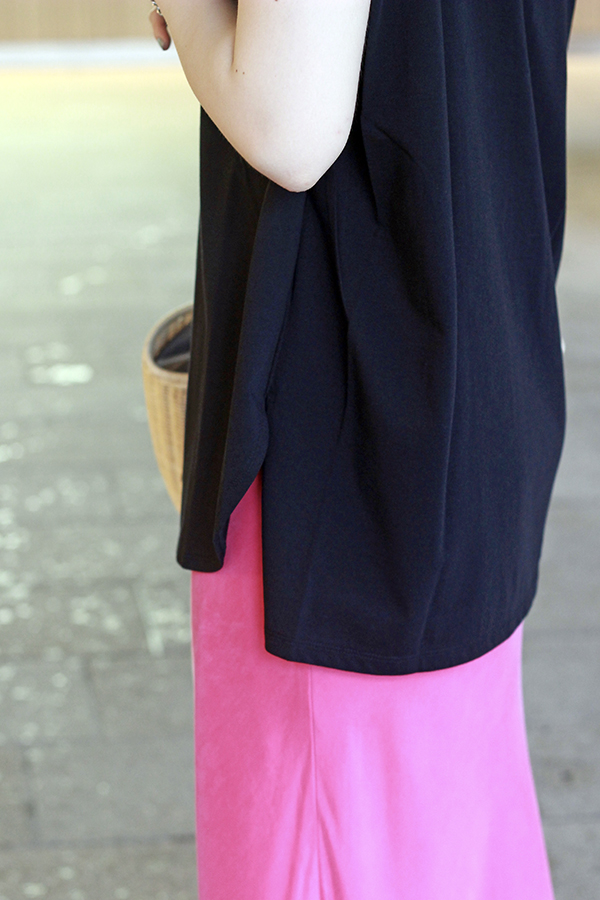シンプルなカットソーに派手色をボトムに取り入れてメリハリのあるコーディネートにしてみました!