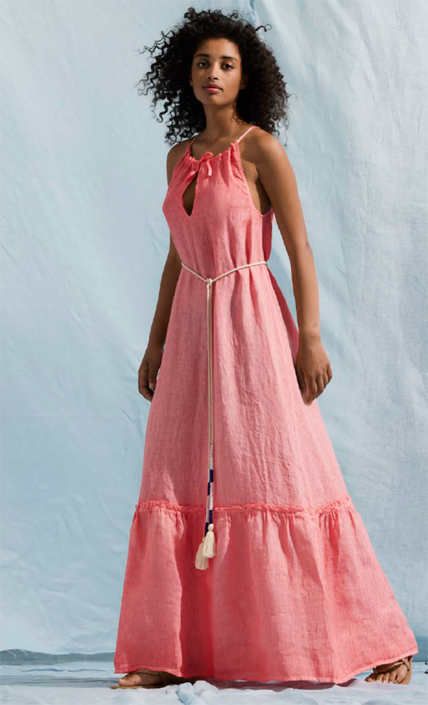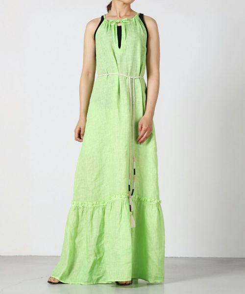 こちらのマキシワンピースは切り替え位置が高いので脚長効果も嬉しいポイント。