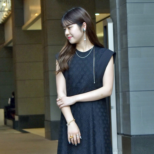 夏は黒を着ると重たい印象を与えてしまうかもしれません。しかし、顔周りに存在感がある大ぶりアクセサリーを持ってくることによって明るく涼しい印象になります!