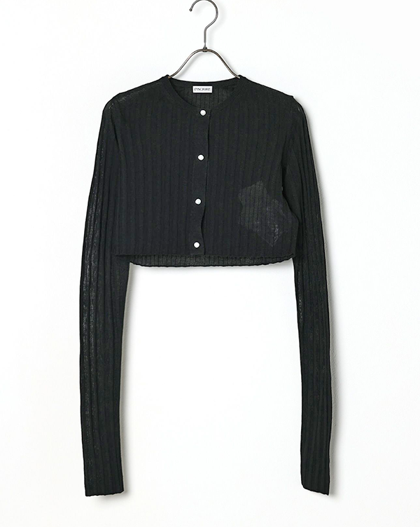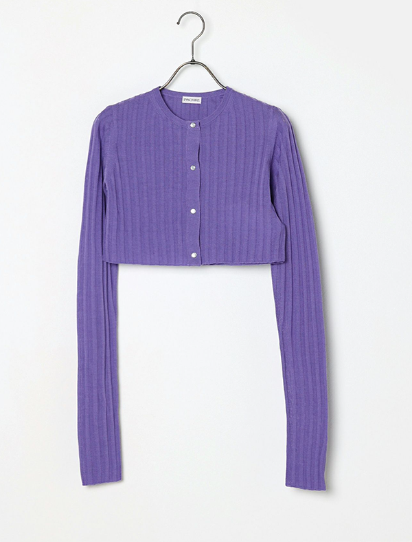 長めの袖丈と短めの着丈が絶妙なバランスのショートカーディガン。