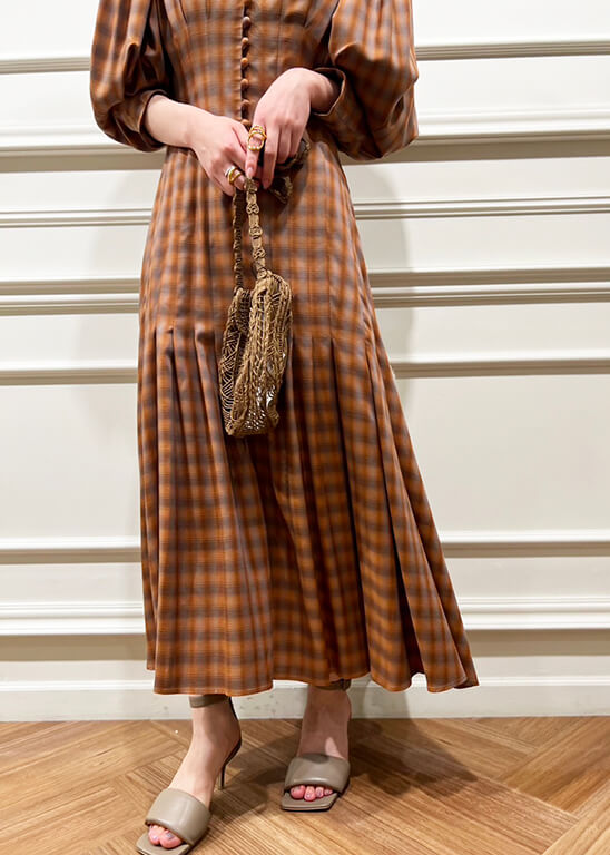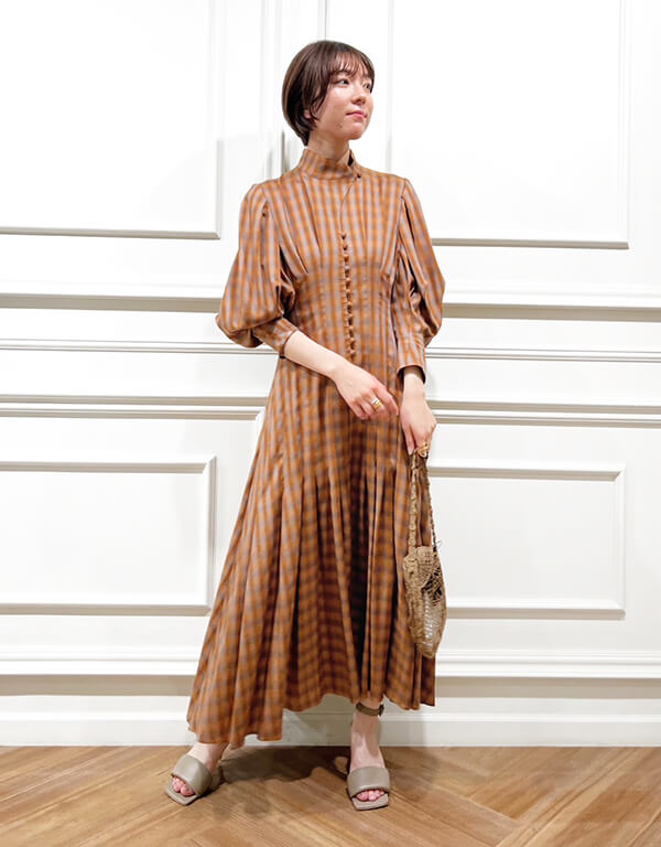 【Mame Kurogouchi(マメ クロゴウチ)】 Linen Mix Ombre Check Flared Dress