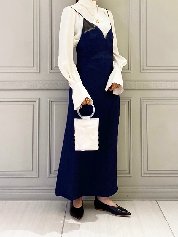 ワンピースもシルク綿を使用。