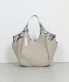 ラフィア素材とパイソンレザーのコンビが高級感を漂わせるトートバッグ。