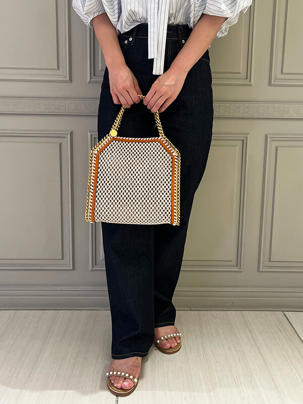 夏らしいメッシュな網目とオレンジのカラーがパッと目を引くSTELLA McCARTNEY(ステラ マッカートニー)のファラベラバッグです!