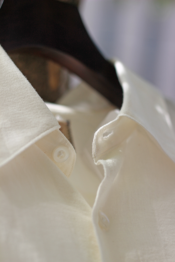 開襟と言いましたが、トップまでボタンが付いているので、襟の開きが苦手な方やタウンユースできちんと着たい方は是非閉じて着てください。