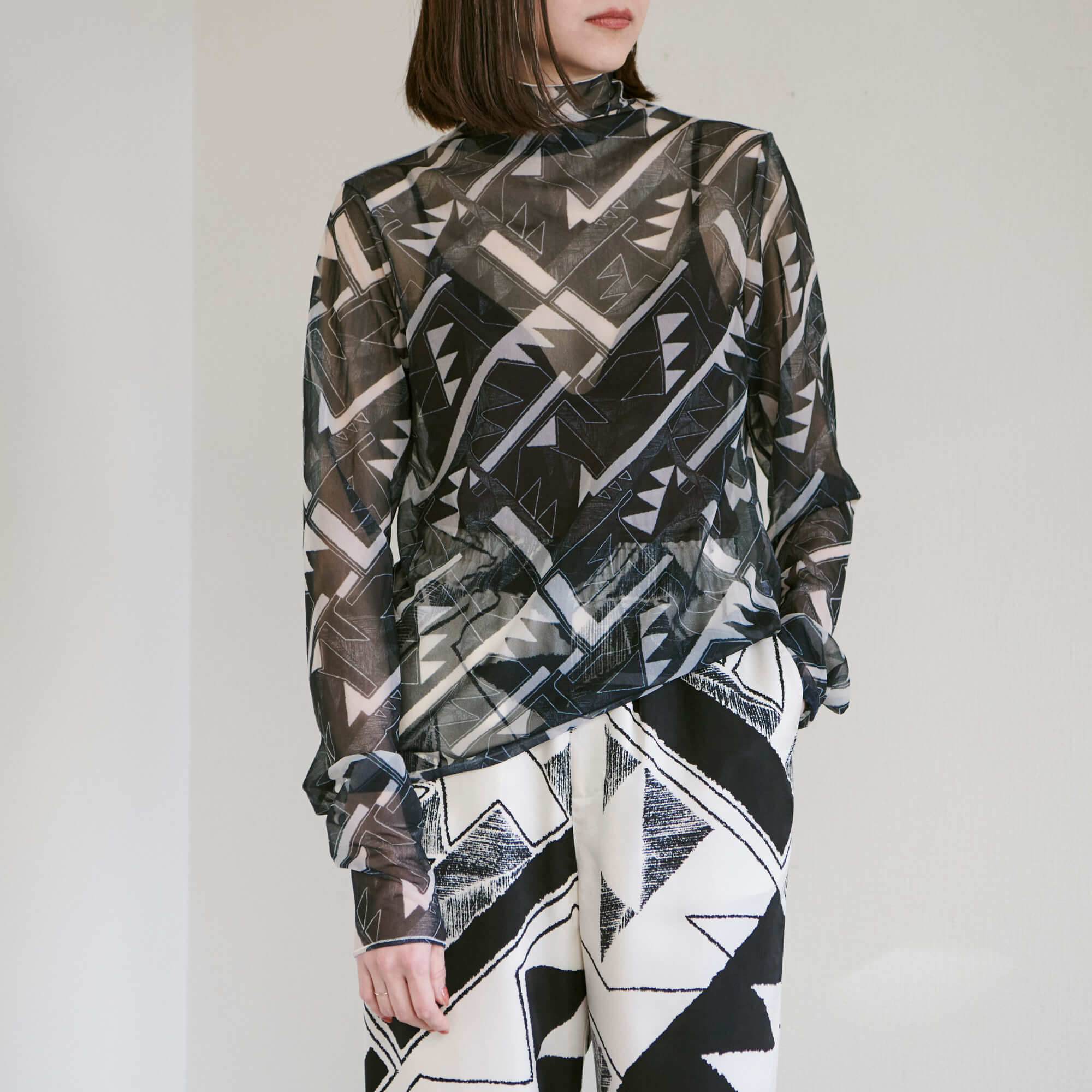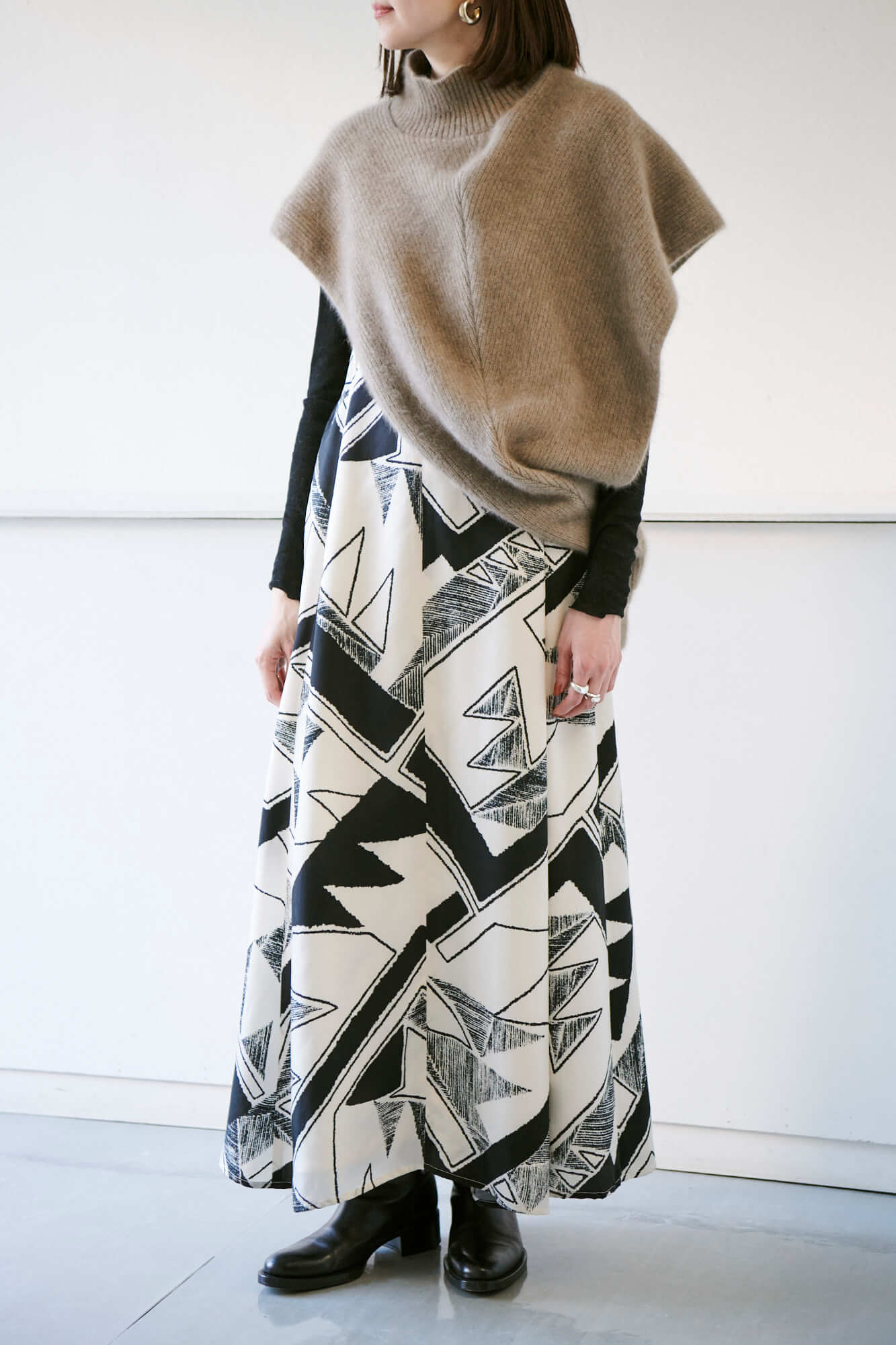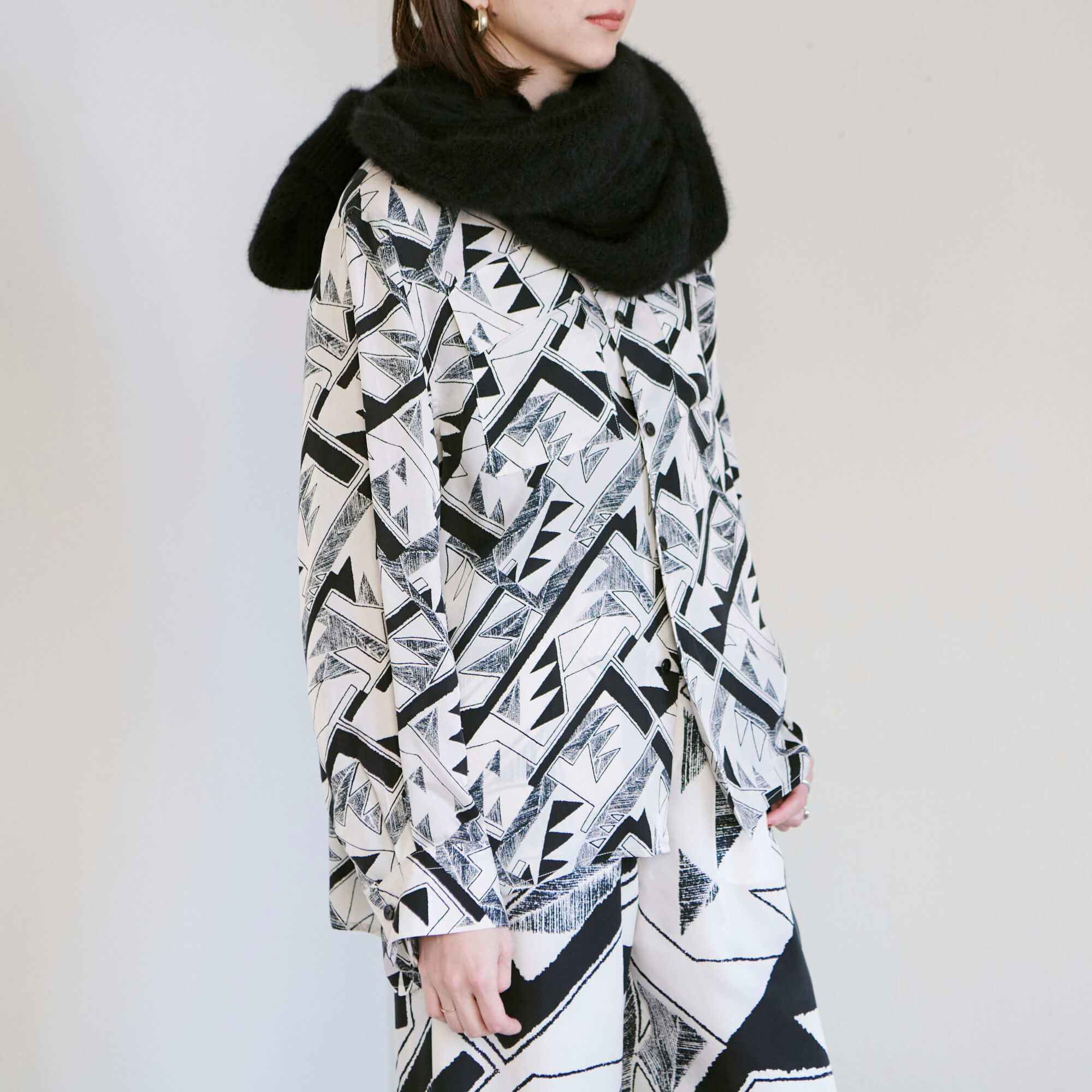 秋冬コレクションの中でも注目は、京都の手捺染の染公房で染め上げたオリジナルのジオメトリック柄。
