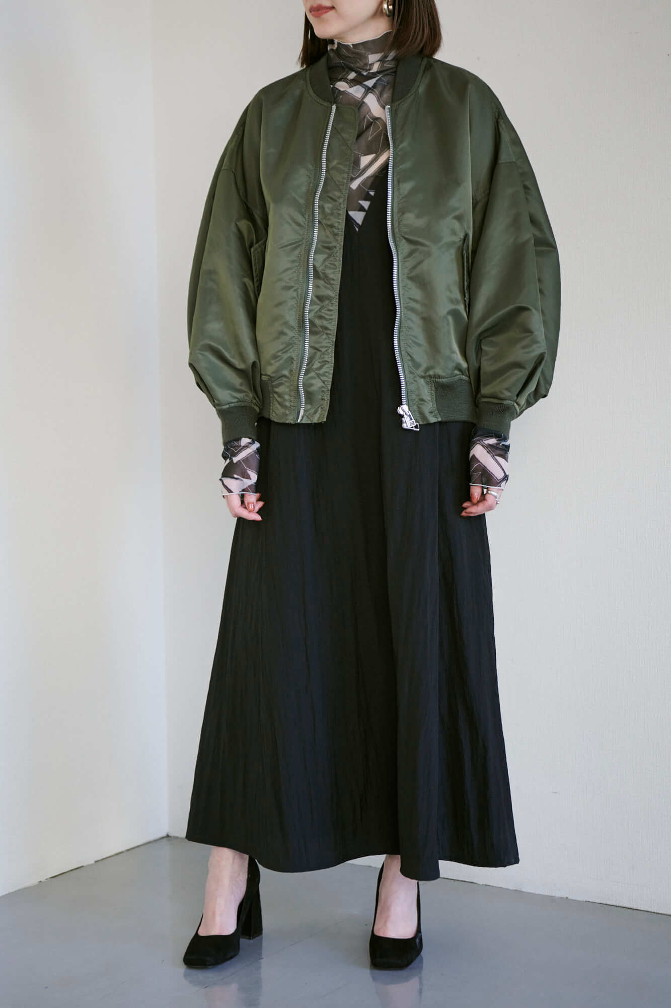 特徴的な袖のバルーンライン、コーディネートのフォルム遊びが叶うデザイン性と、厚手のニットもスムーズに袖通しやすい機能性も兼ね備えた優秀アウターです。
