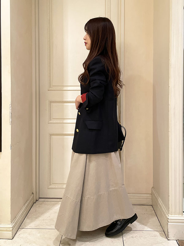 ミリタリー由来のスカートですが、シルエットの美しさが現代的な印象に仕上げてくれます!