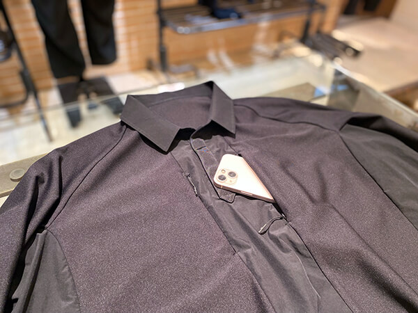 高機能素材で有名なSOLOTEX採用しているのでシワにならないことや生地が伸縮性に優れていることで型崩れしにくいのがポイント!