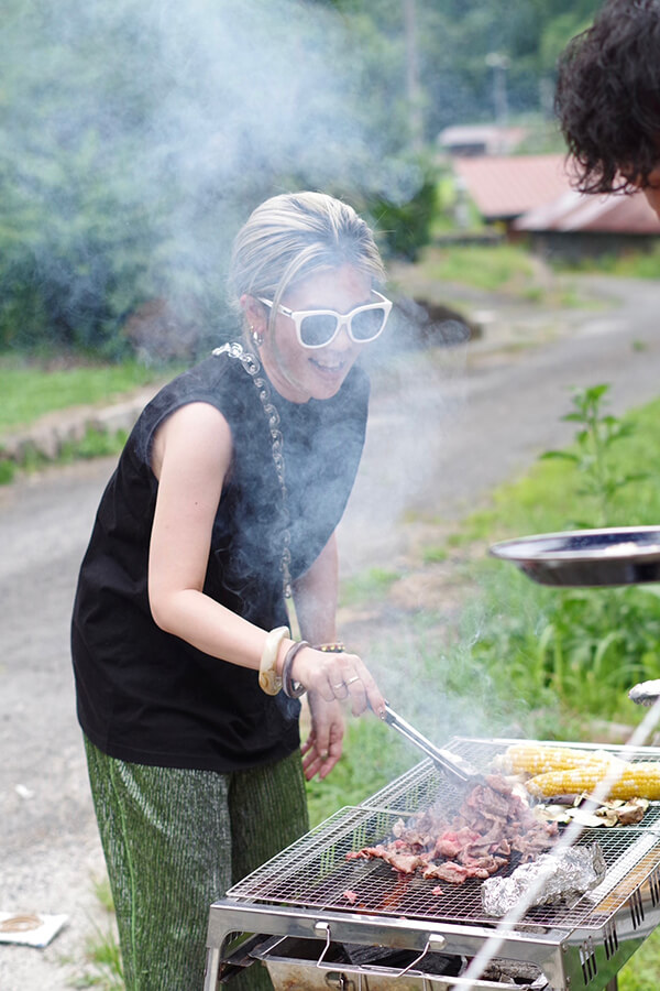 BBQとはいえ、贅沢空間を意識したせいか、今日のレディースメンバーは色とりどりのスタイリング。カラフルなメンバー写真を見てなんだか幸せな気持ちになりました。