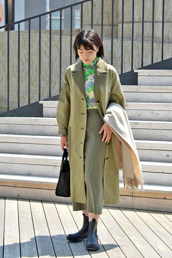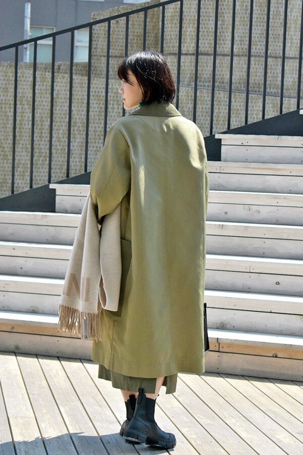 カーキ色が綺麗なコートを軸にコーディネートを組んでみました!