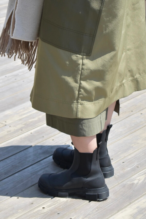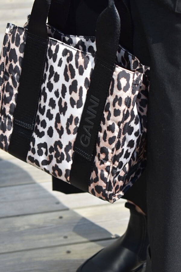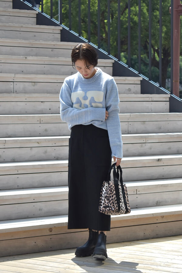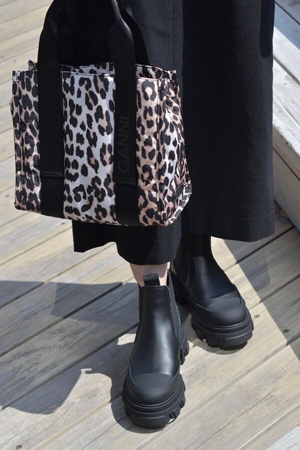 バッグとブーツもGANNIで合わせてみました。厚底でボリュームのあるブーツと、ヒョウ柄のバッグを合わせると、シンプルなコーディネートも一気にお洒落感がUPします♪