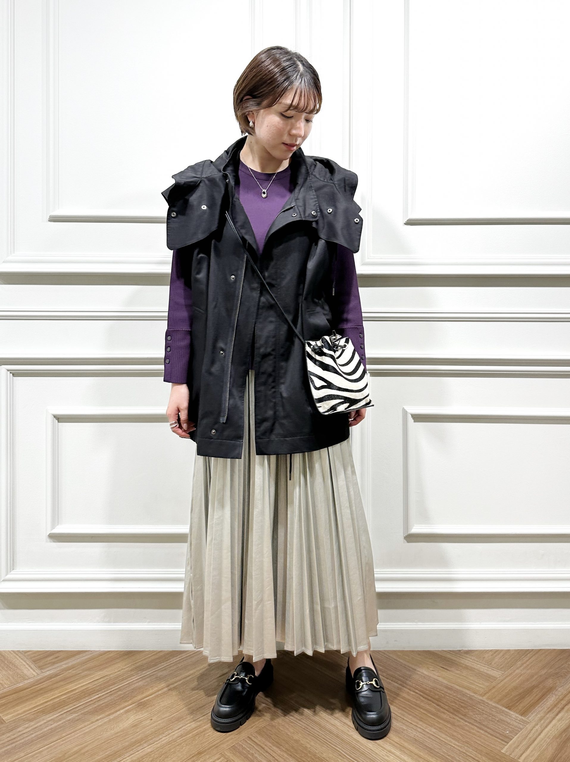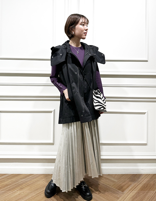 お次はこのプリーツスカートを使った別の着回しをご紹介!