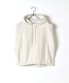 少しボリュームのあるシルエットとカジュアルなデザインのノースリーブパーカー。肌触りがよく、着心地がとても軽いです。