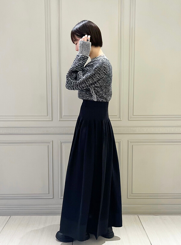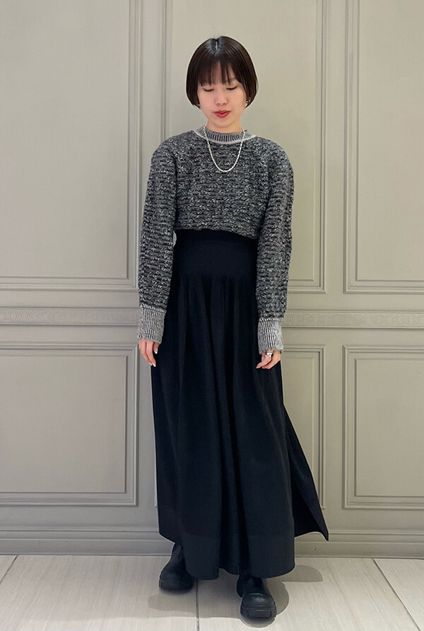 平面的でたっぷりとした身幅と、ボリューム感のあるパフスリーブが可愛いこちらのニット!