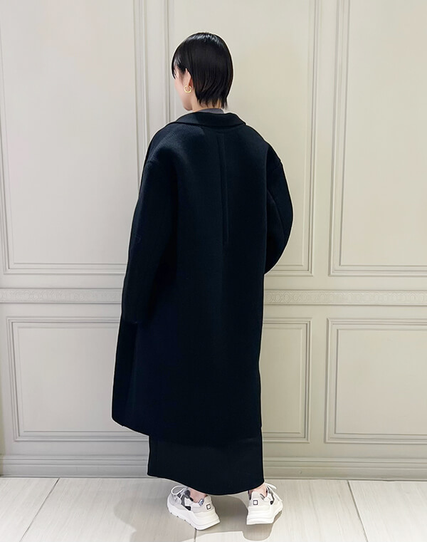 ウールでポリエステルを挟み込んだ三層構造で編まれていて、強い張り感が特徴のコートです。