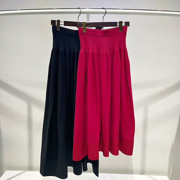 カラーは単色使いの深いレッドとブラックの展開で、シルエットの個性を際立たせてくれます♡