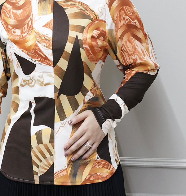 1枚で存在感のある柄が魅力的。何といっても肩パットがTOGA PULLAらしいですよね!
