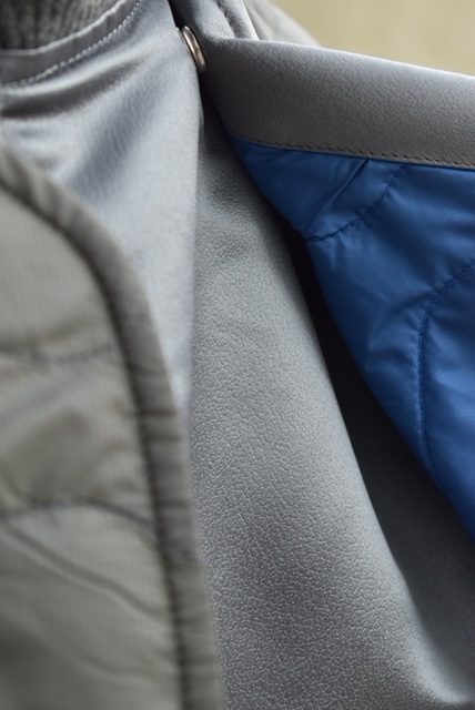 袖口タブや首元にボタンを通せるような穴が空いていますが、こちらは同ブランドから発売されている、スーベニアジャケットとドッキングするためのボタンです。