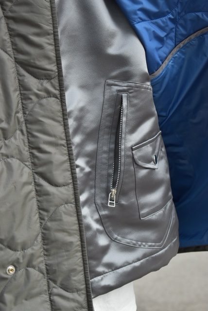 防寒対策の為に重ね着をするミリタリーのレイヤーシステムを、上手くファッションディティールとして取り入れられており、デザイナーの拘りを感じられます。