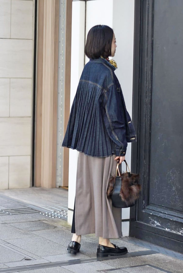 プリーツ✖️プリーツで、ちょっとデザイン性のあるものがお好きな方におすすめしたいコーディネートです!