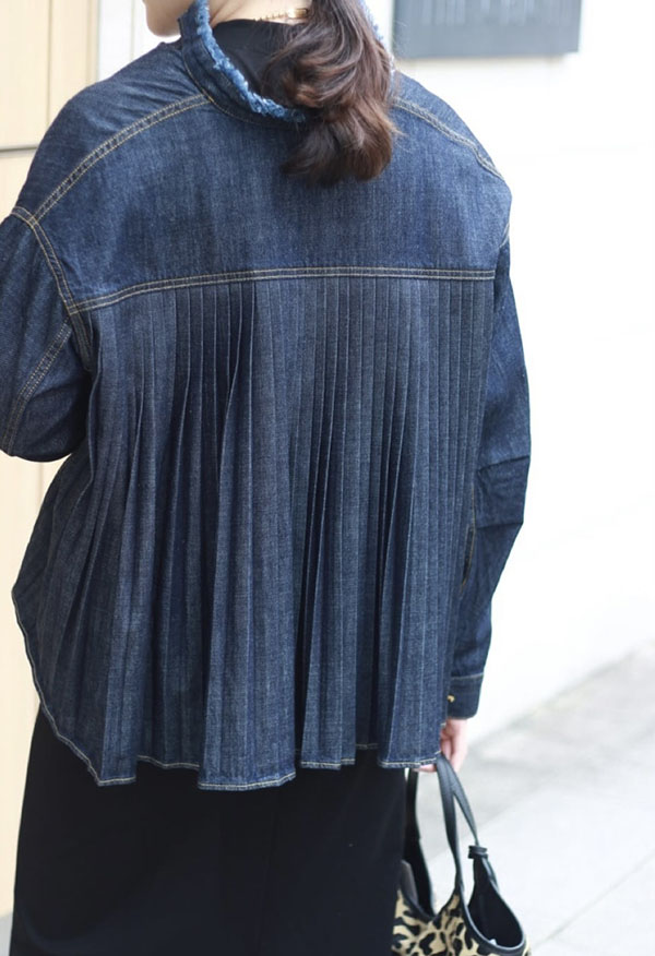 後ろのプリーツのデザインはもちろん、首周りのフリンジや、ステッチの雰囲気など、可愛いポイントがたくさんです!