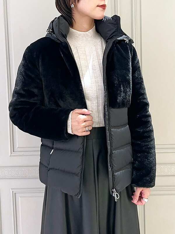 異素材の切り替えがあるので、白のダウンでも着膨れしにくいです✨