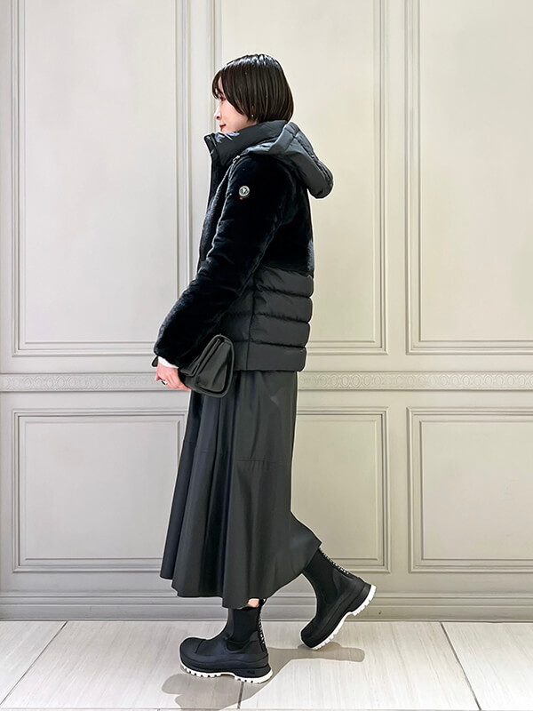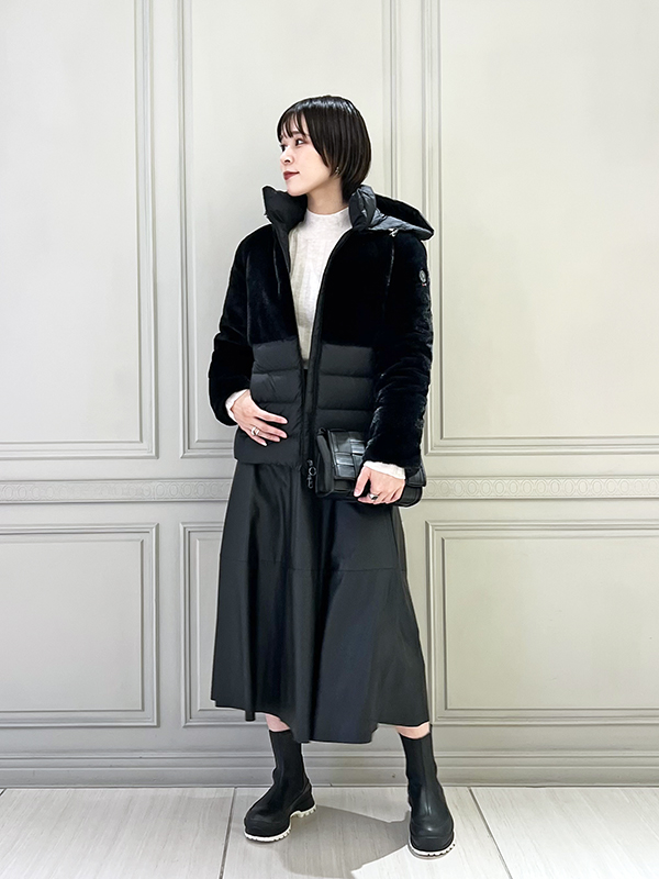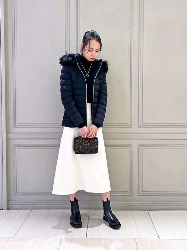 すっきりしたラインのダウンなのでフレアスカートとも相性抜群です!