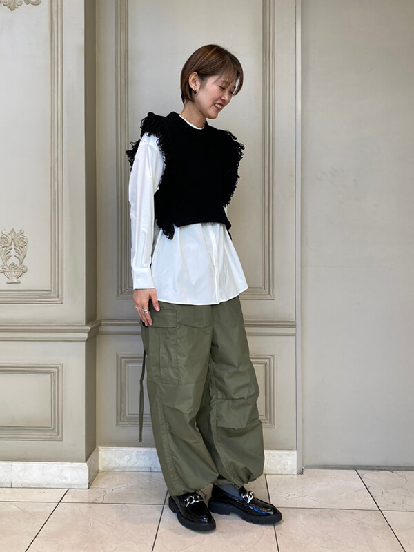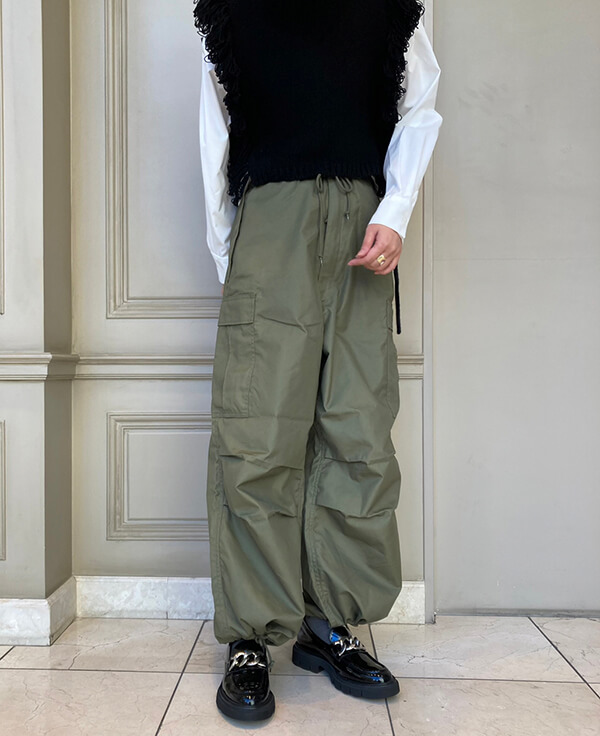 裾はドローストリングで絞れる仕様になっており、ボリューム感を楽しんでいただけます。