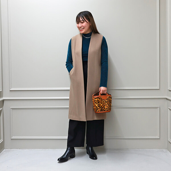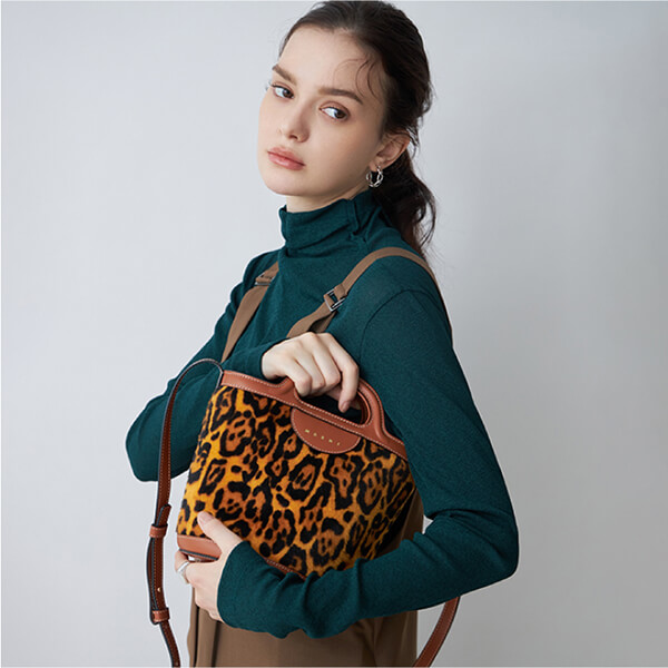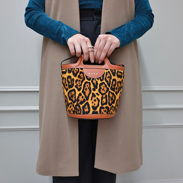 「私はコーディネートのアクセントにぴったり!レオパード柄が印象的なTROPICALIA ミニバケットバッグをチョイス!デザイン性だけでなく上質な肌触りもポイントの一つ♡