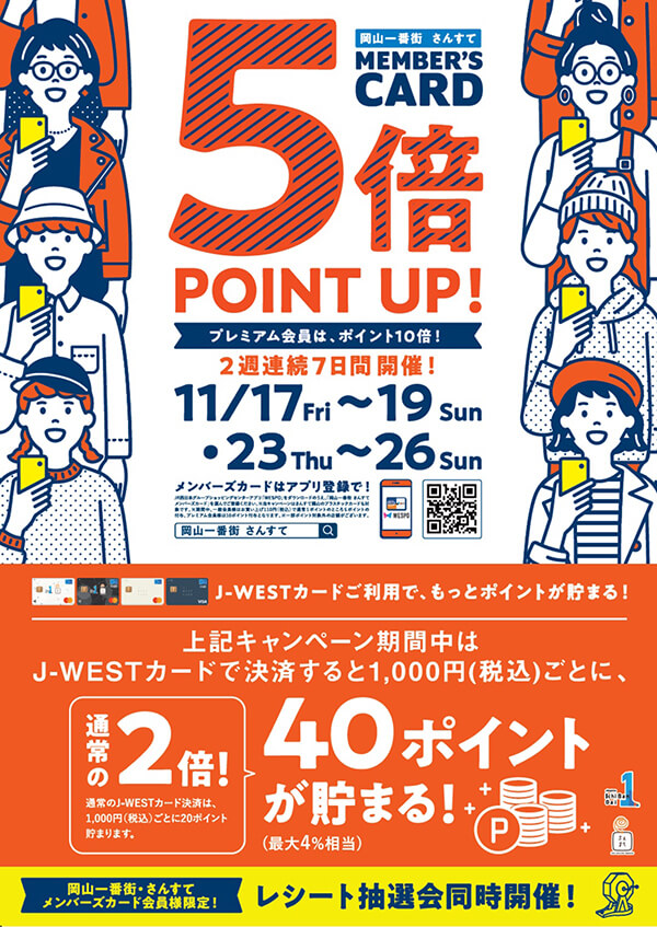 11月17日(金)~11月19日(日)と11月23日(木・祝)~11月26日(日)の2週にわたり、 WESTERポイント5倍ポイントアップを開催致します✨