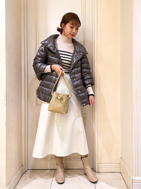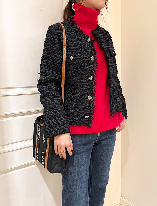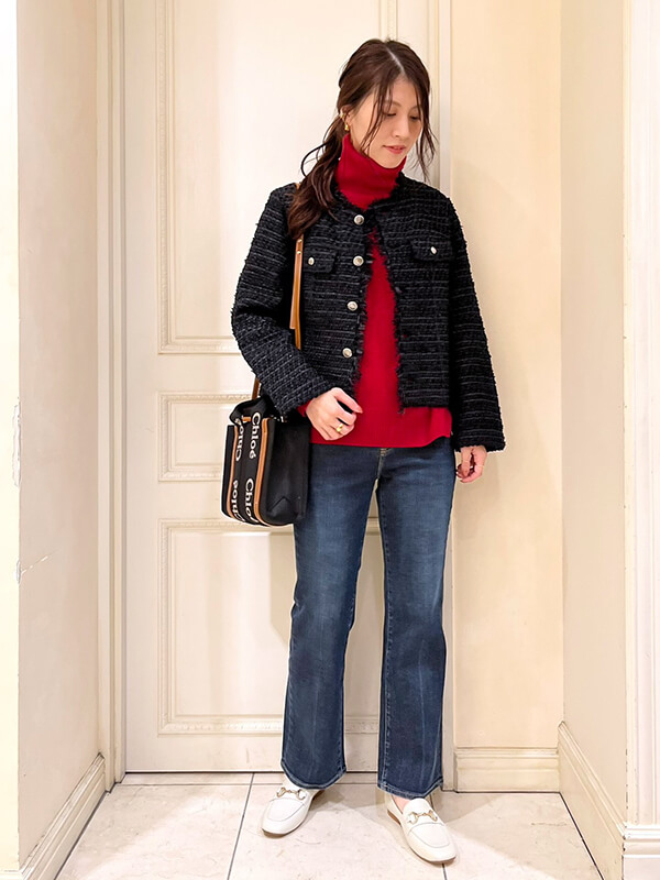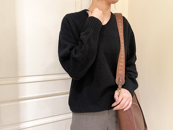 骨格がウェーブなのでVネックは似合わないのですが、このニットは縦に深く開きすぎていないため苦手な方でも挑戦していただけると思います!