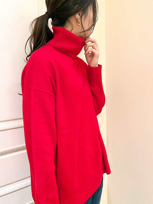 程よくゆったりとしたシルエットでお尻周りまでカバーできる着丈➕柔らかな肌触りで着心地がいい!また、カシミヤ100%なのに家庭で簡単にお手入れしていただけるのも魅力的👌🏻