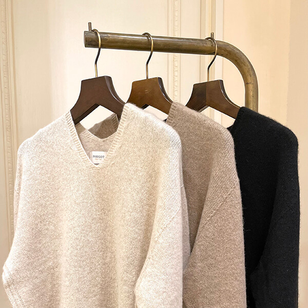 まずは、毎年大人気のウォッシャブルカシミヤニット!