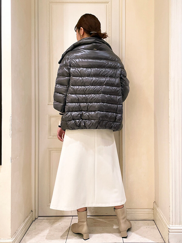 この光沢感と日本の着物を基にしたシルエットがエレガント且つ女性らしい印象を与えてくれます。