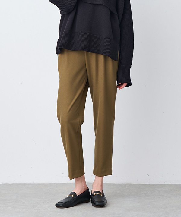 細身すぎないテーパードシルエットと背面ゴム仕様で、リラックス感のある仕上がりに。