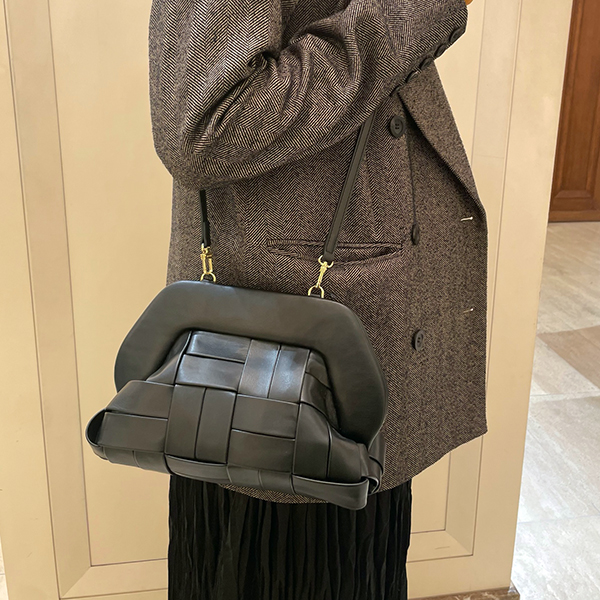 モチっとした生地感にシンプルなボックス型のバックなので、しっかり物も収納出来ます。