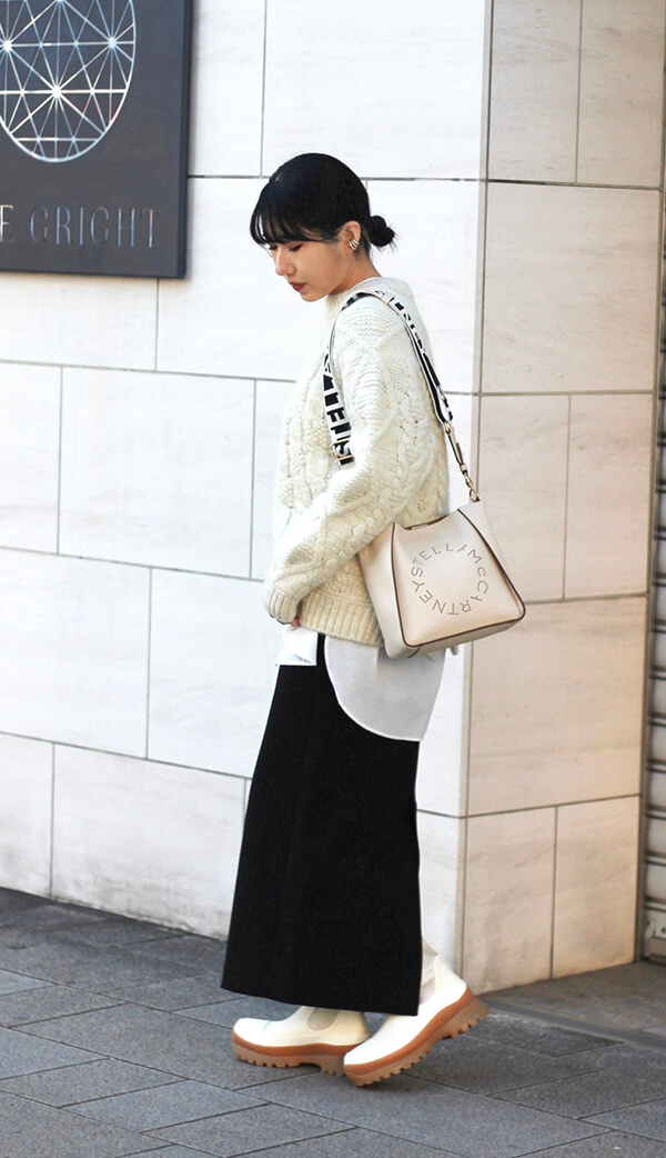 ポテっと厚めのソールに、素材のミックス感がステラ他と差がつくコーデの主役シューズです。