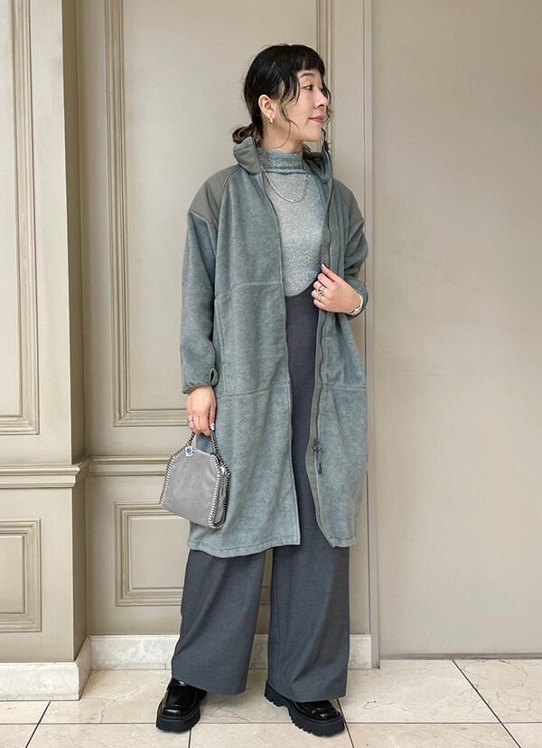 流行に敏感な女友達とのショッピングは、今流行りのグレー系のワントーンでまとめて。
