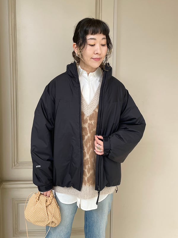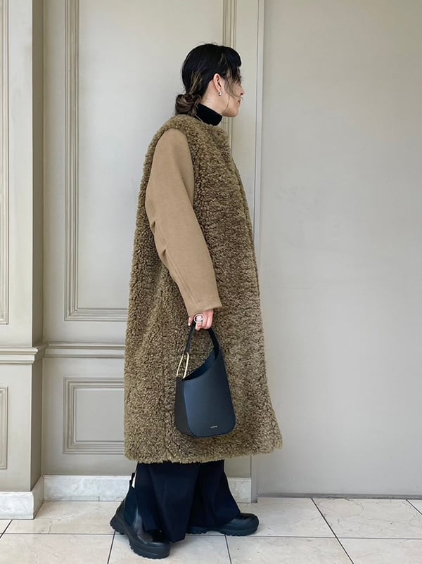 着用したファーコートは、ファーベストを重ね着したようなデザインで、着るだけで存在感のある着こなしが決まります!