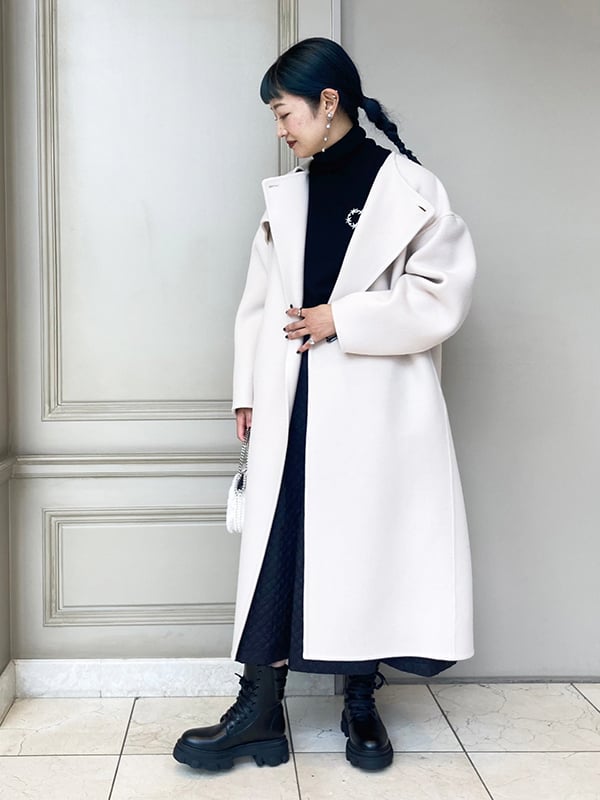 着用したコートは、毎シーズン定番で作成されているダブルフェイストレンチコート。