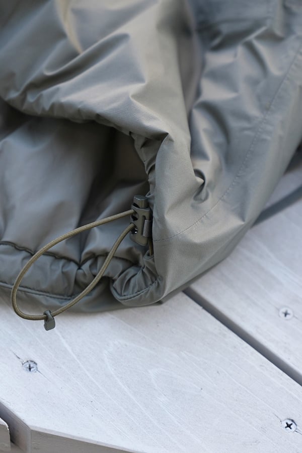 後ろ身頃が少し長めに作られていることで、ドローコードを絞った際にも背面を覆ってくれる仕様になっています。