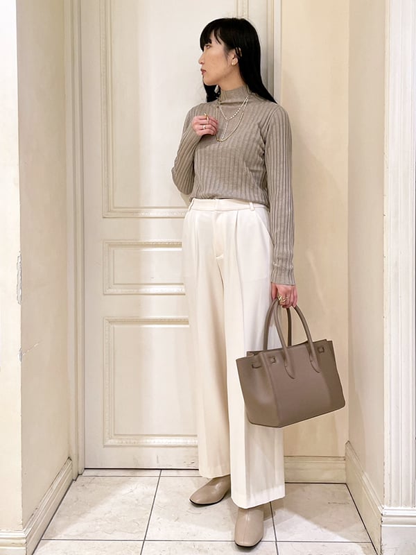 ベージュ~アイボリーのワントーンコーデにしてみました。